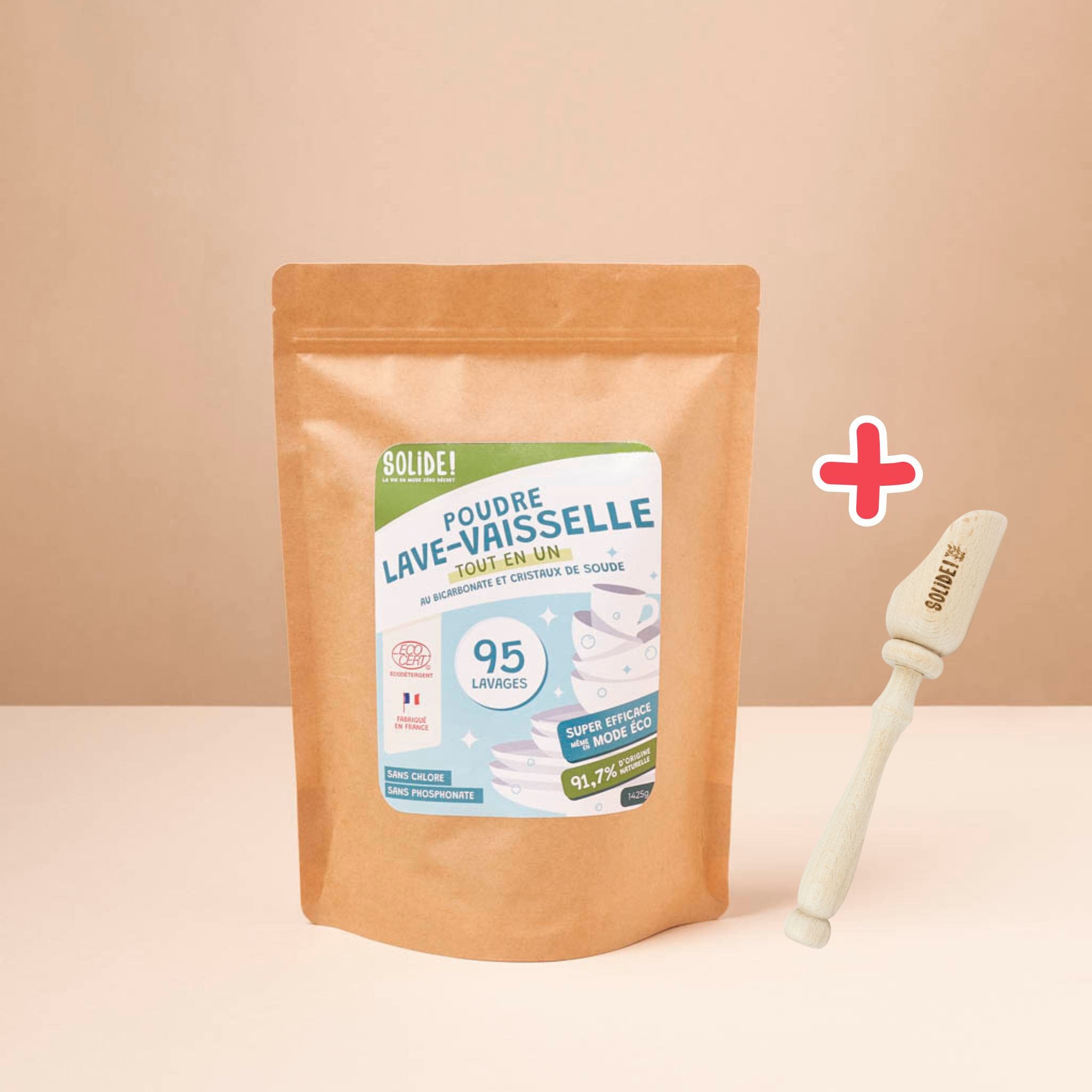Optez pour un produit lave-vaisselle naturel, efficace et simple à doser grâce à notre pelle doseuse en bois.